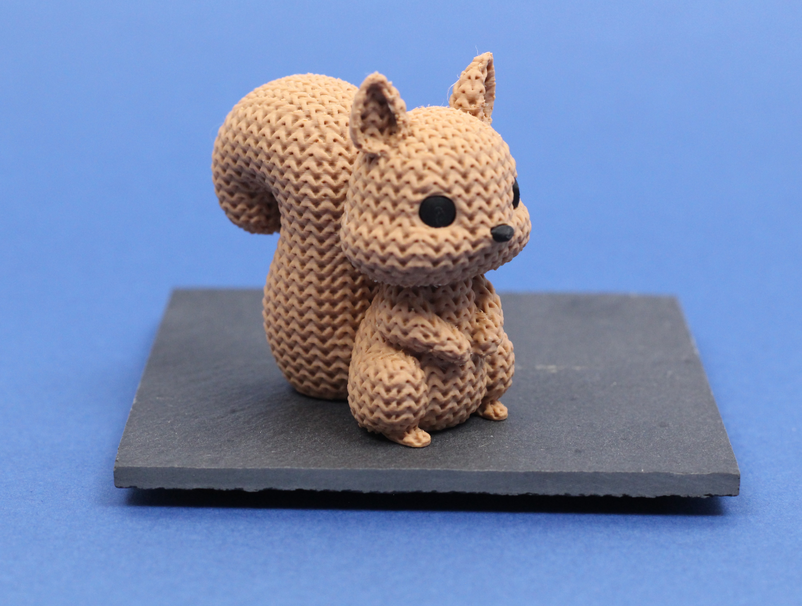 L’écureuil curieux : Sa texture finement nervurée évoque le tricot et en fait une pièce décorative aussi originale que charmante. À poser sur une étagère ou offrir en cadeau, il apportera une touche de nature et de douceur à n’importe quel intérieur.