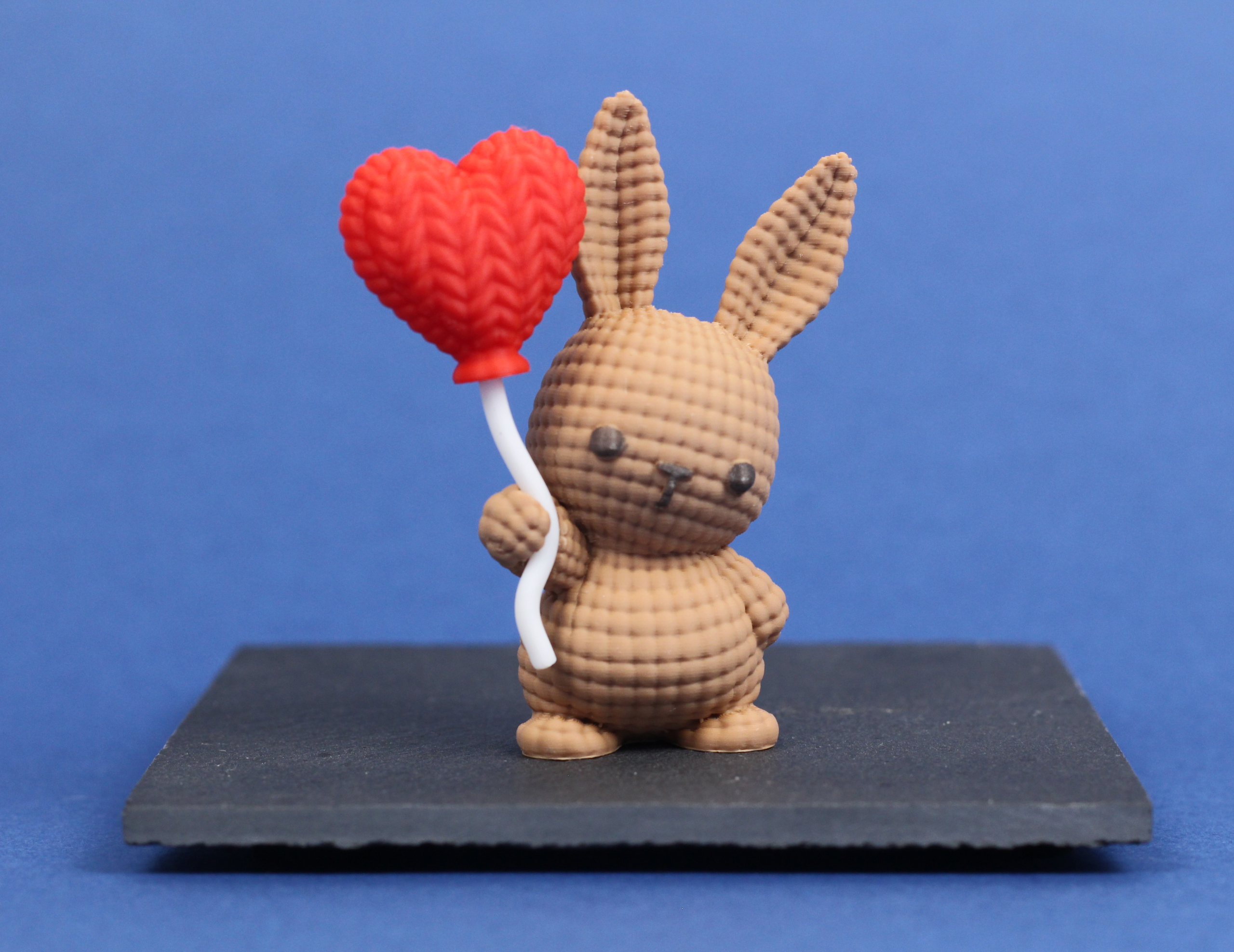 Lapin ballon cœur : Sa texture finement détaillée, qui rappelle le tricot, lui donne un charme irrésistible. Idéal pour décorer une chambre d’enfant, une étagère ou pour offrir en cadeau romantique. Une touche de poésie.